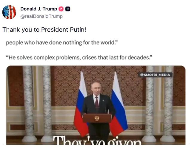 普京回应特朗普未能获得诺贝尔和平奖,确认其